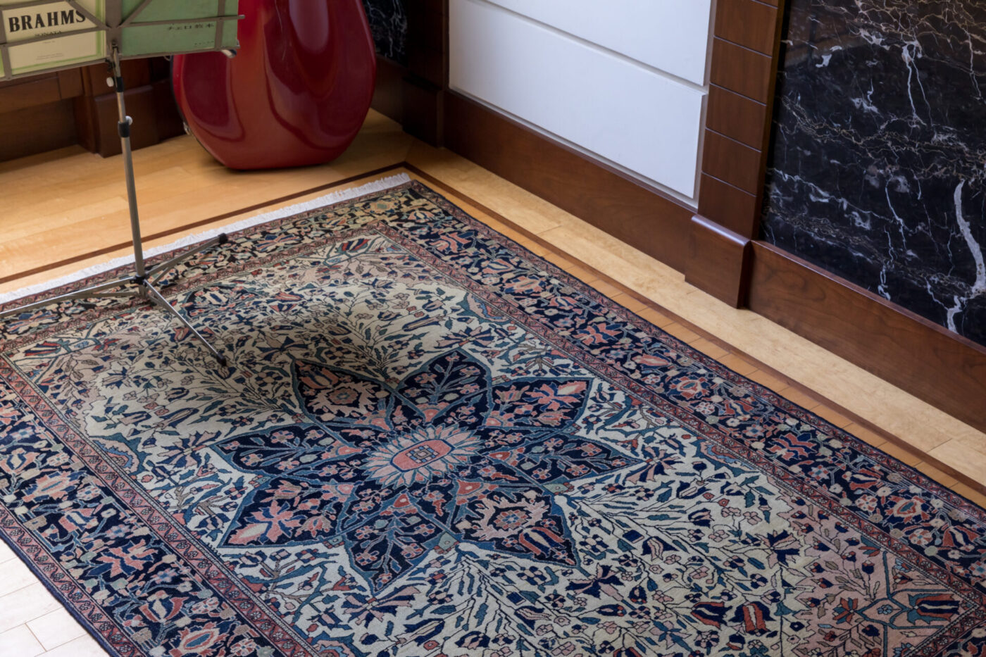 100年以上前に制作された絨毯。時代を経て纏った風合いや色の美しさ、普遍的な美を備えたデザインなど一言では言い尽くせない魅力を持ちます。