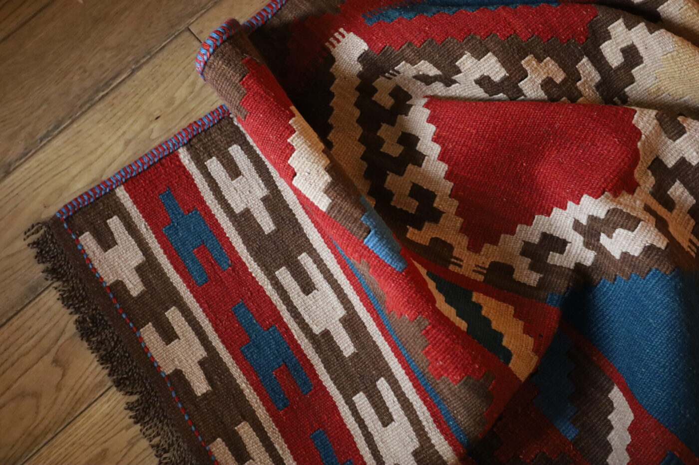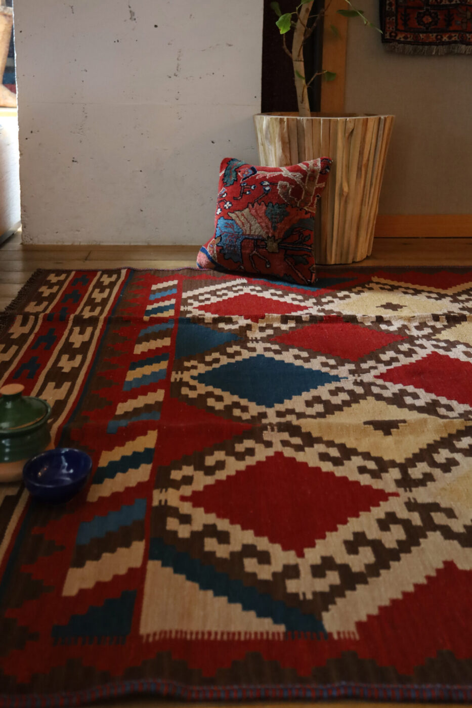 The Qashqai people are a nomadic group representing Iran in the southwestern Fars province, primarily composed of Turkic ethnicities with roots in Central Asia and Azerbaijan. Even in modern times, there are still people who do not settle, and continue to live a nomadic lifestyle. They move back and forth across the Zagros Mountains, spending winters in the pastures near the Persian Gulf and summers in tents at the cooler foothills of the Zagros. Spinning thread and weaving carpets are tasks typically performed by women, while men are responsible for herding sheep and shearing wool. The carpets they produce feature intricate abstractions of divine creatures and plants that have been passed down since ancient times, as well as bold, large representations of lions and other motifs in a coarse weave known as Gabbeh. Additionally, they are famous for other woven textiles such as kilims, jajims, and sumaks, which are not pile-woven. These textiles have been used as traditional items such as horse-cover, saddle bags, bags, salt bags, and bedding.